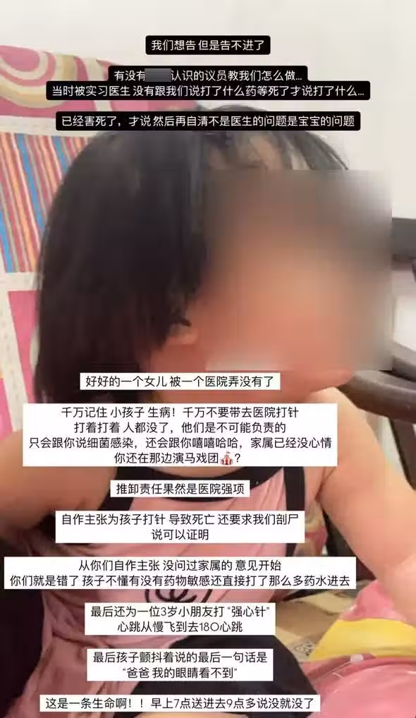3歲女重感冒送院被注射多針 「我眼睛看不到……」 成了對爸爸的遺言。 僅2個小時,女兒變成一具冷冰冰的屍體