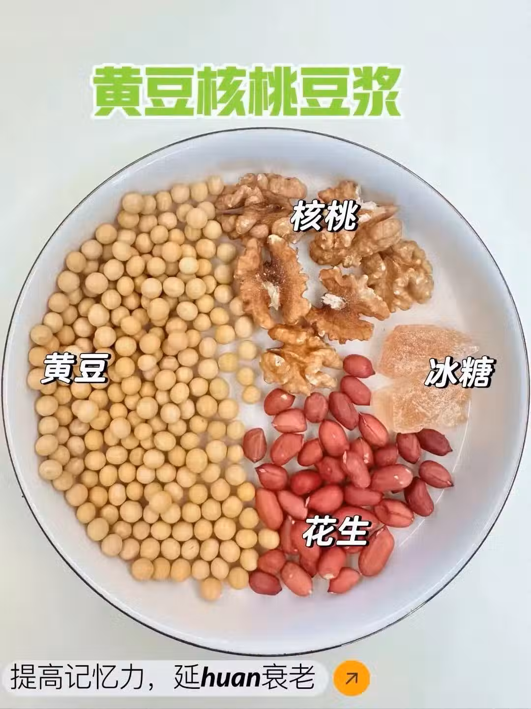 食材準備:黃豆➕核桃➕花生➕冰糖