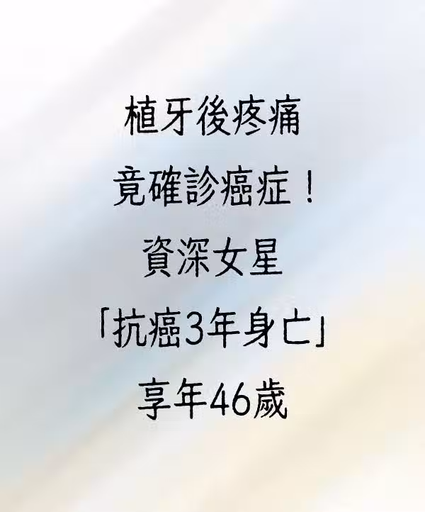 植牙後疼痛竟確診癌症!著名女星「抗癌3年身亡」享年46歲