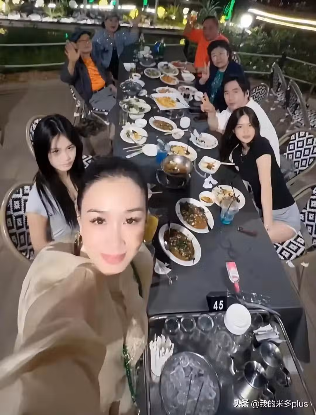人多不光是旅途歡樂不沉悶,連吃飯也像平時家庭聚餐一樣坐得滿滿當當,鍾麗緹拍下家人們一起品嘗美食的畫面,八口人正好坐一條長餐桌,這種親人圍繞在身邊的感覺太讓人羨慕了。