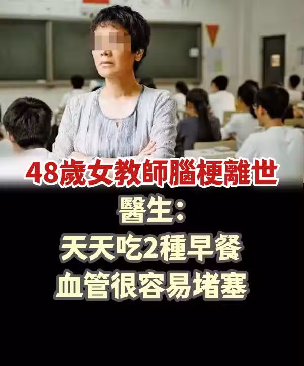 48歲女教師腦梗離世,醫生:天天吃2種早餐,血管加速堵塞!千萬別再吃了……