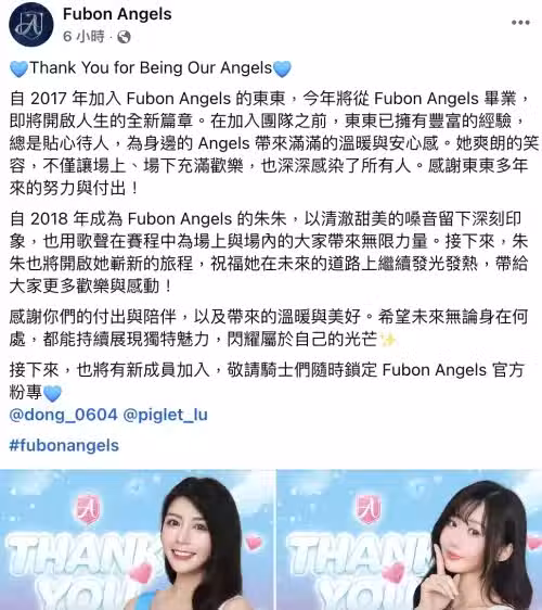 Fubon Angels朱朱無預警離隊!不舍6年啦啦隊生涯:一定還會再見