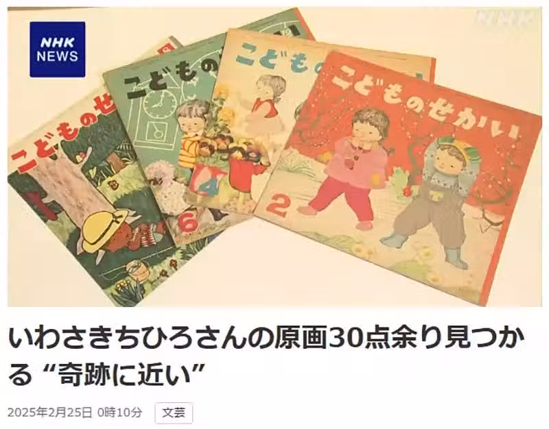 根據日本NHK電視台報導,日本知名女性水彩畫家兼繪本作家岩崎知弘(いわさきちひろ)的珍貴原畫,有30多張在最近被發現。