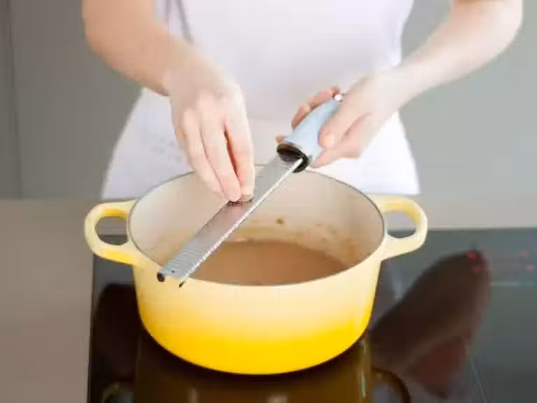 拌進營養酵母、肉豆蔻,加鹽和胡椒調味。