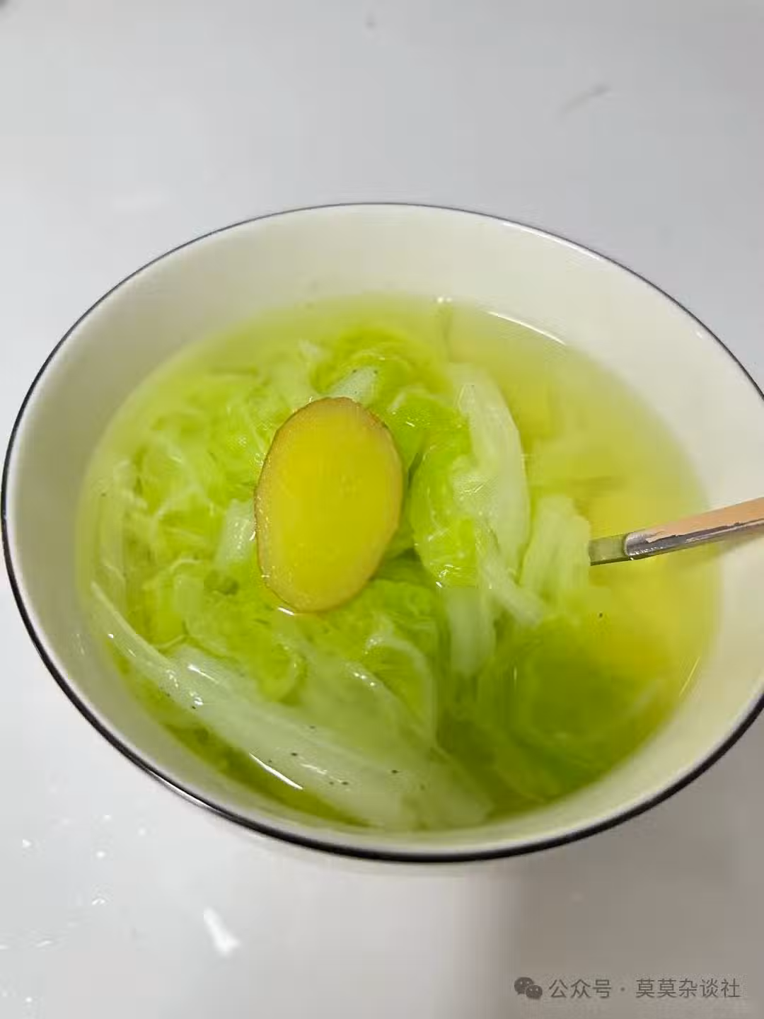 鍋中加適量水,放入白菜和生薑,大火煮開後轉小火,煮至白菜軟爛。