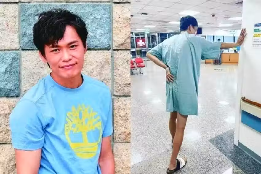 他PO出在挂號櫃檯前的自拍以及身穿並扶牆走路的畫面,表情相當痛苦不太舒服,提及病因,他才搞笑表示「天啊 我這輩子從來沒有腰痛過,