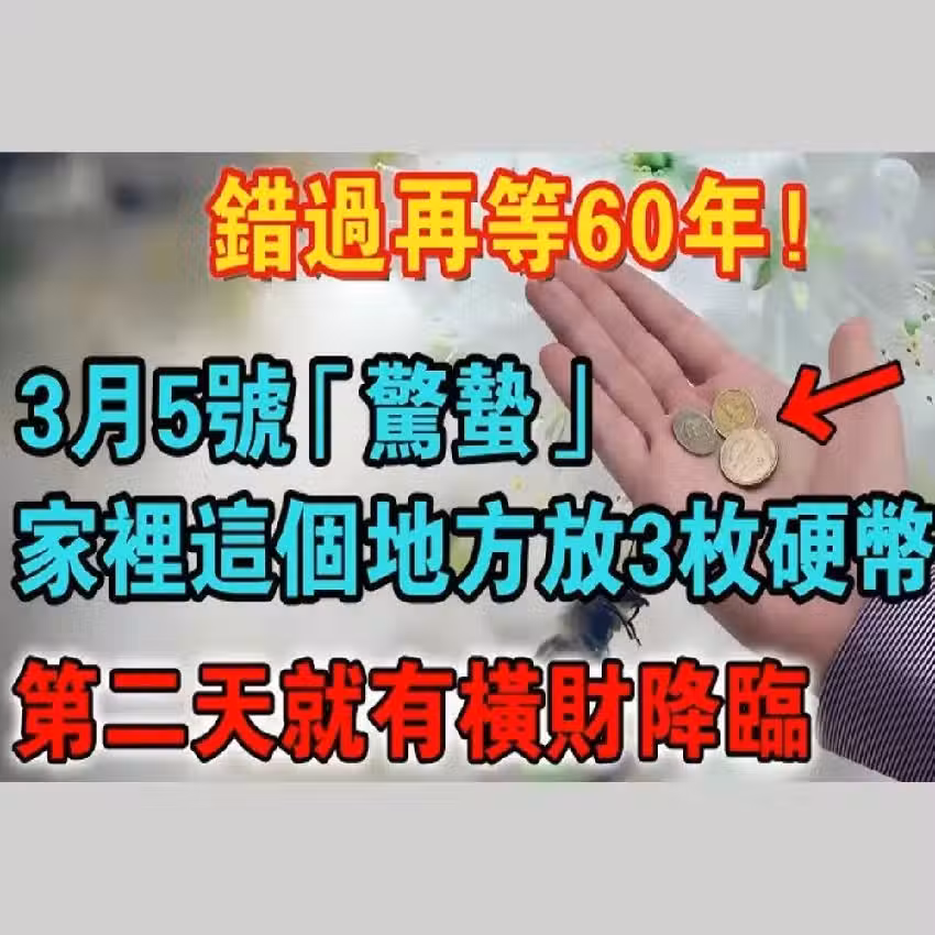 錯過再等60年!3月5號「驚蟄」,家裡這個地方放3枚硬幣,第二天就有橫財降臨,再窮都能改命!