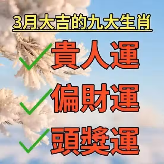 3月大吉的九大生肖:貴人運,偏財運,頭獎運.