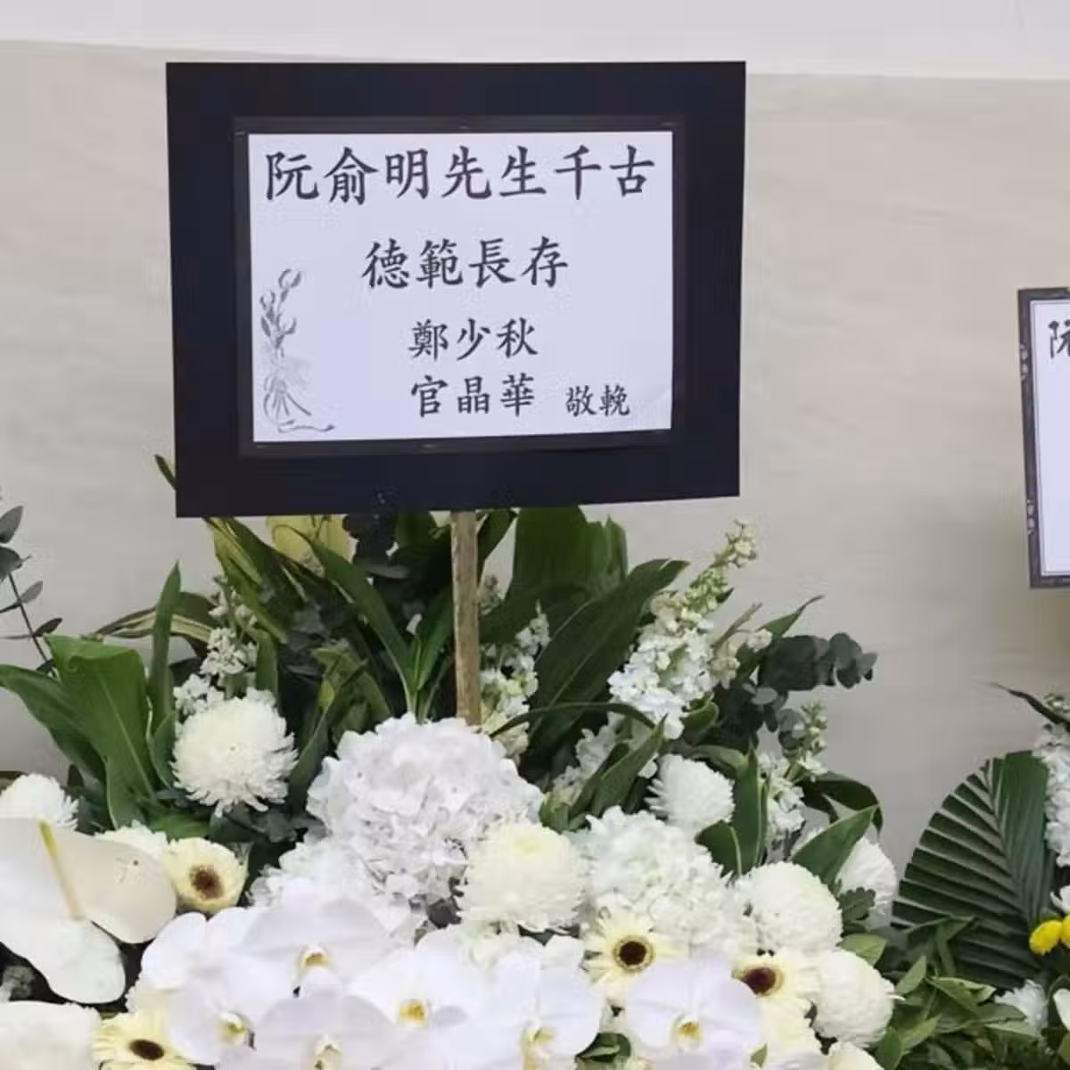 俞明在娛樂圈多年,也結交了不少好友。很多後輩,對於他也是特別尊重。大家熟知的鄭少秋、官晶華、黎瑞恩、關寶慧、江華以及阮兆輝等港星,都有送花牌悼念。
