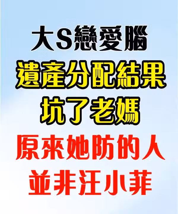 大S戀愛腦,遺產分配結果坑了老媽,原來她防的人並非汪小菲