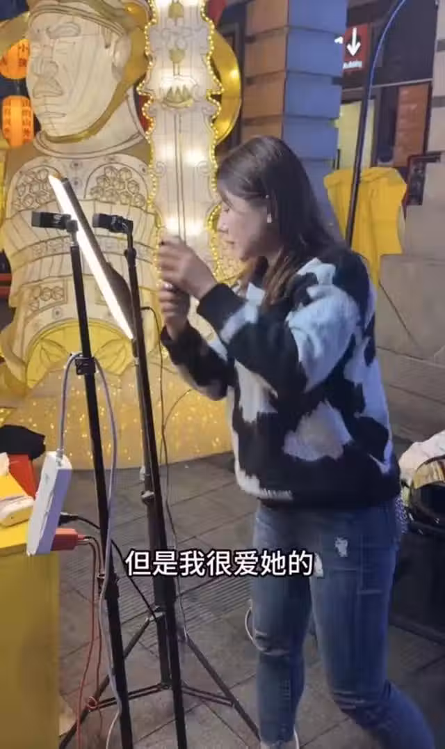作為老闆娘,蔡淇俊的妻子並沒有坐在一旁當閒人,而是主動的幫助老公出攤,除了設置燈架以外,還積極的搬貨,忙進忙出的幾乎沒有一刻休息過。