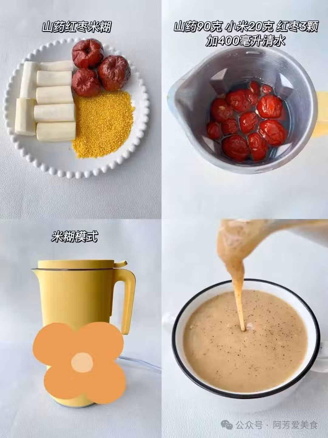 山藥紅棗米糊是很多寶子們的最愛,紅棗甜蜜香甜,味道濃重,記得去核,味道更濃噢。在搭配山藥,喝一口好喝極了。