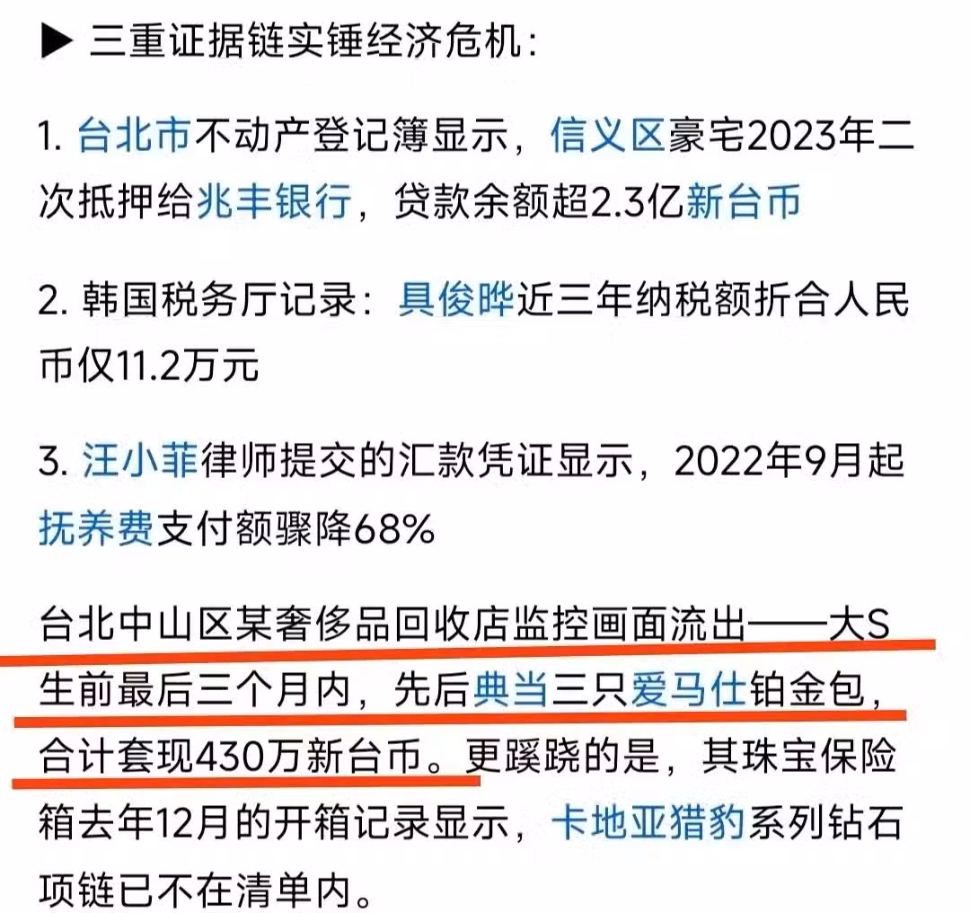 大S除了被爆抵押了信義豪宅,還被爆出了在去世前三個月典當了奢侈品包!