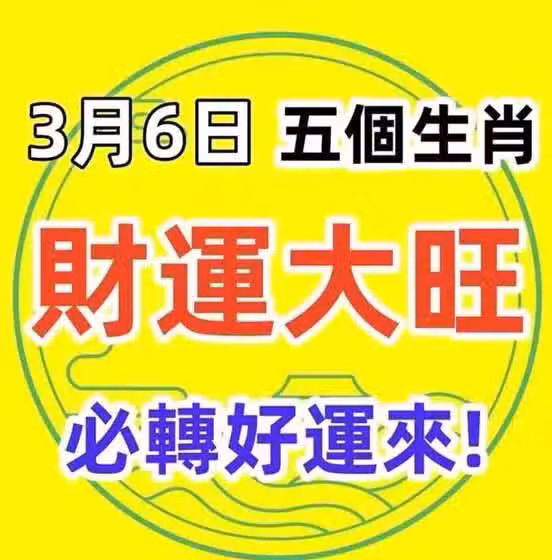 3月6日財運大旺的五個生肖,必轉好運來!