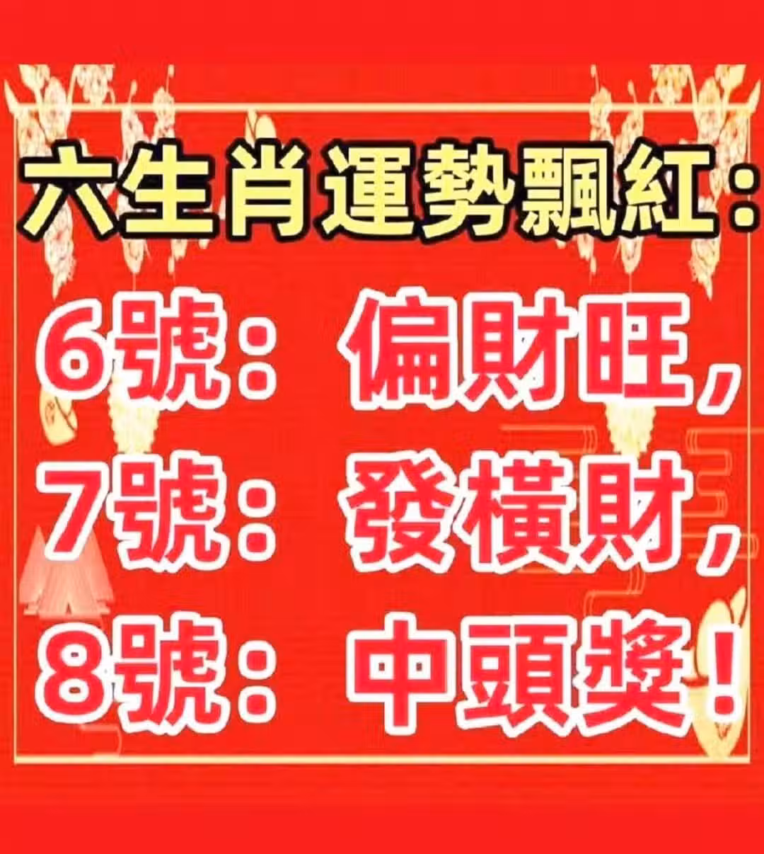 六生肖運勢飄紅:3月6號偏財旺,7號發橫財,8號中頭獎.
