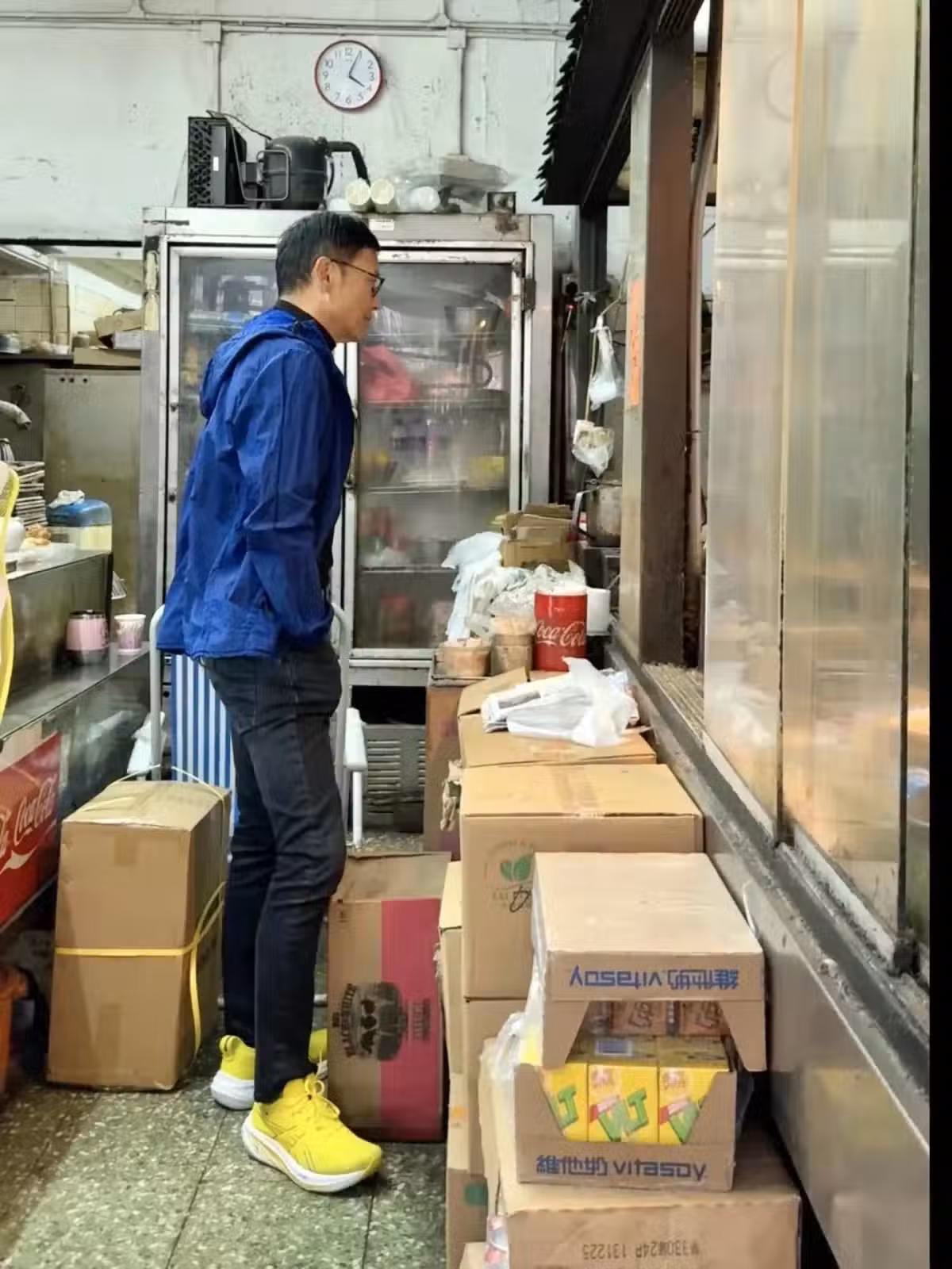 67歲苗僑偉現身街頭,排隊買豬扒包,打扮有型,和老人們愉快聊天