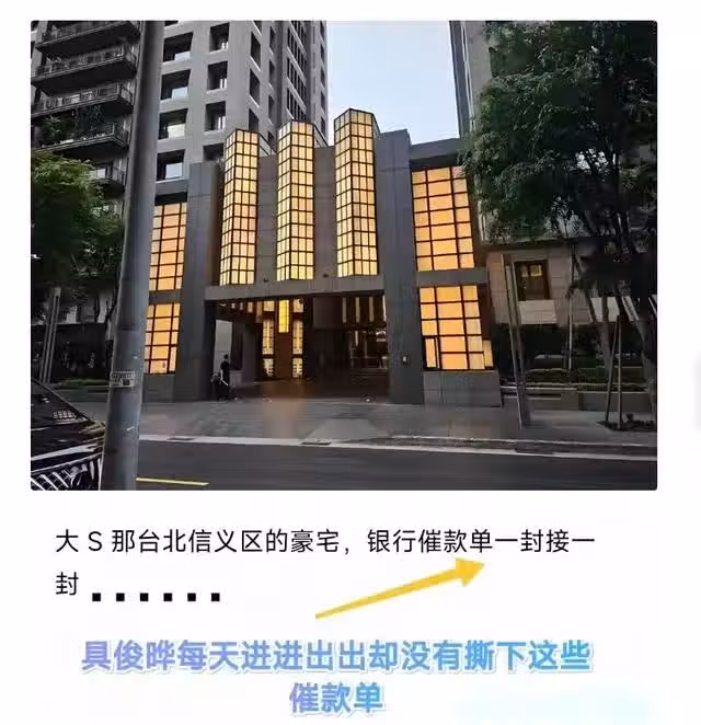 誰能想到,大S生前最愛的台北信義區4.6億豪宅(約1.06億人民幣),如今竟被銀行催款單貼成了「公告欄」?