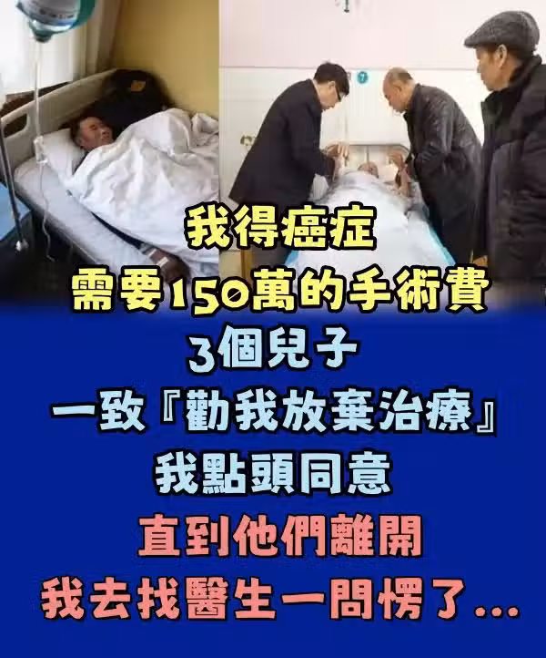 三個兒子只是回來,從醫院了解到治療需要花費三十幾萬(約150萬台幣)的時候,都表示希望放棄治療。
