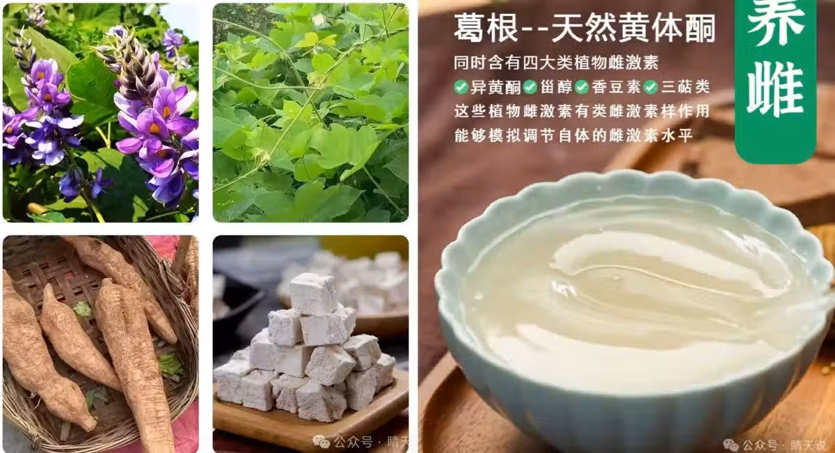 葛根中含有天然黃體酮,是一種營養豐富的食物。它能調節女性體內激素水平,對保護子宮和卵巢健康有積極作用。