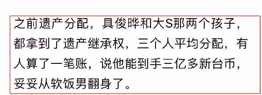 回到大S遺產的話題,他分到了那麼多錢,如果真能說到做到,把這筆錢都給S媽,大家也敬他是條漢子。