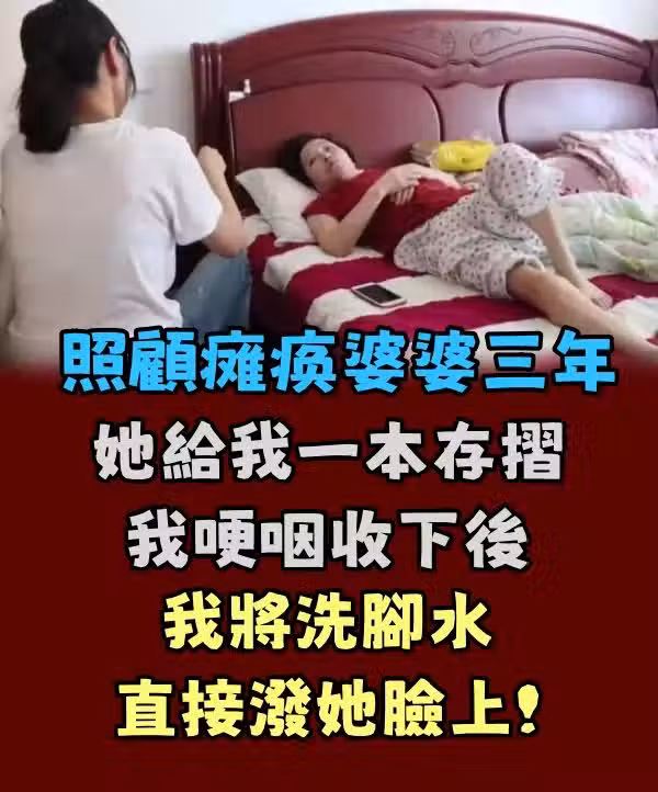 照顧癱瘓婆婆三年 她給我一本存摺我哽咽收下後 我將洗腳水直接潑她臉上!!