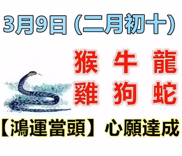 3月9日生肖運勢_猴、牛、龍大吉!