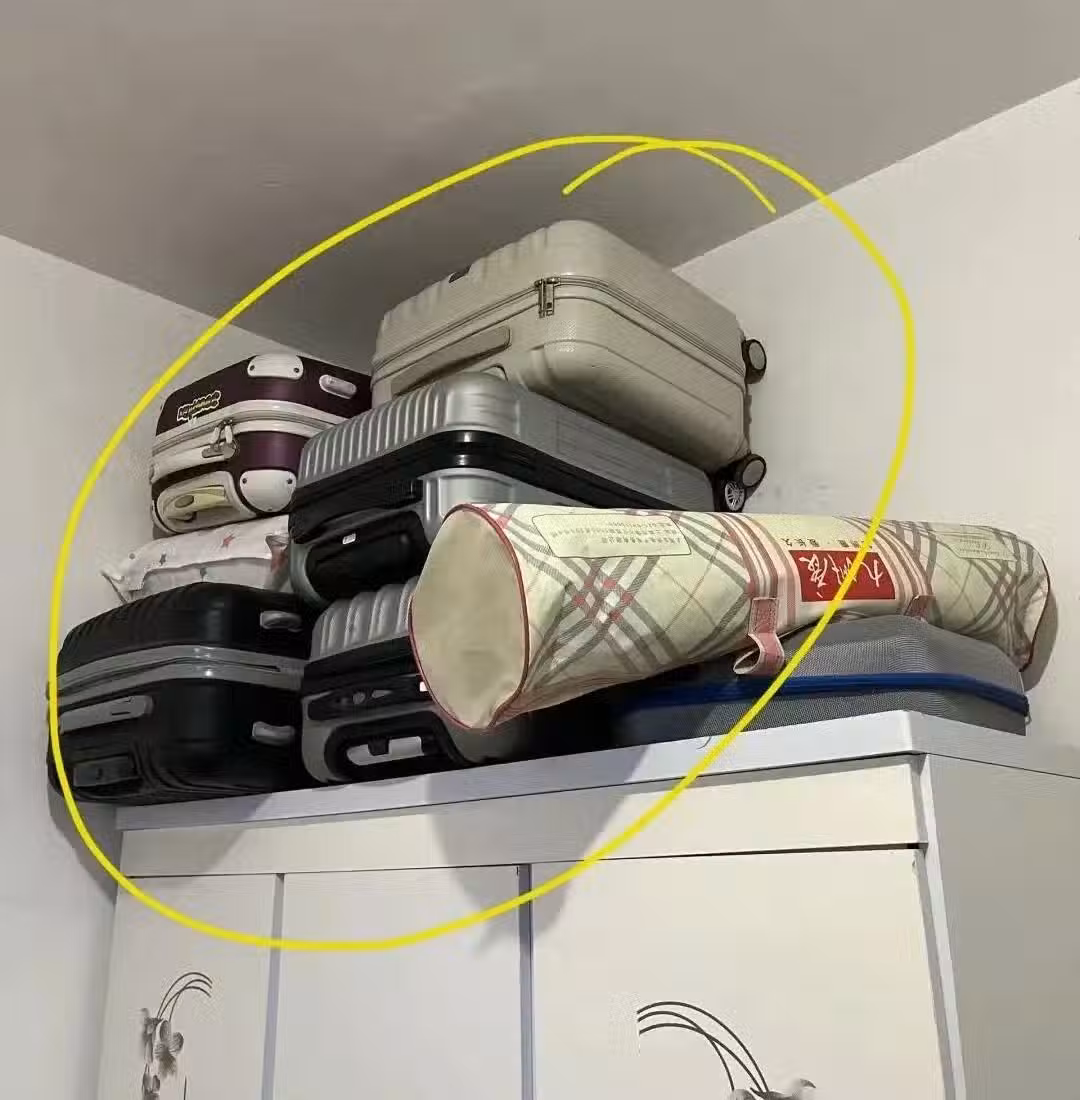 這時候可以換個思路,在柜子底部留出空間,把行李箱推進拉出的時候也省事,還不會弄髒柜子,柜子底部的空間用拖布、洗地機什麼的簡單擦擦就乾淨了。