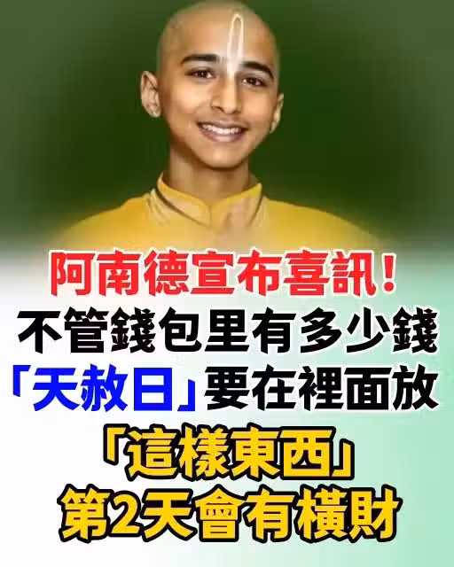 阿南德宣布喜訊!不管錢包里有多少錢,「天赦日」要在裡面放「這樣東西」第2天會有橫財!