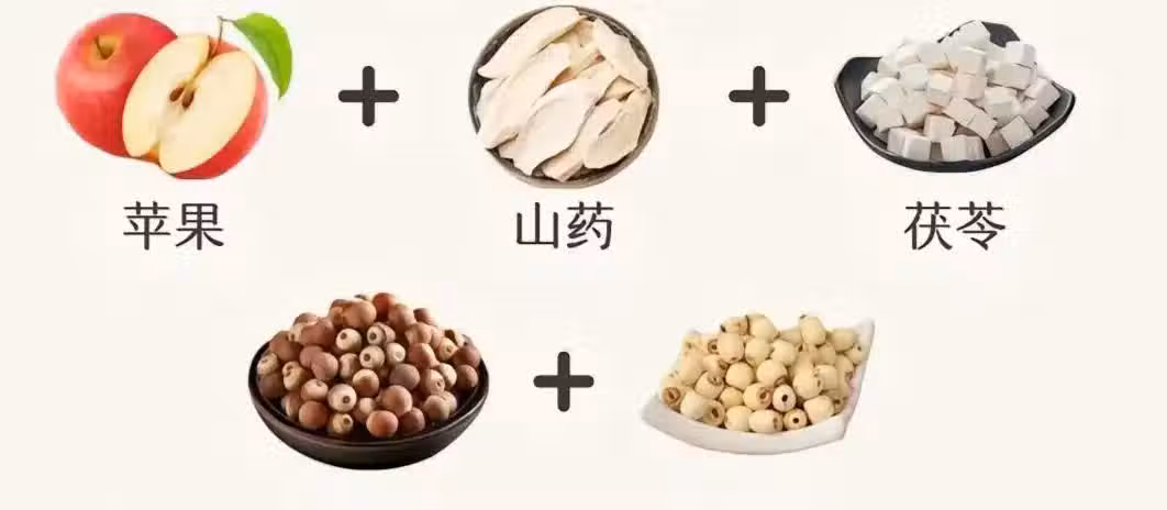 【食材】:蘋果、山藥、茯苓、芡實、蓮子
