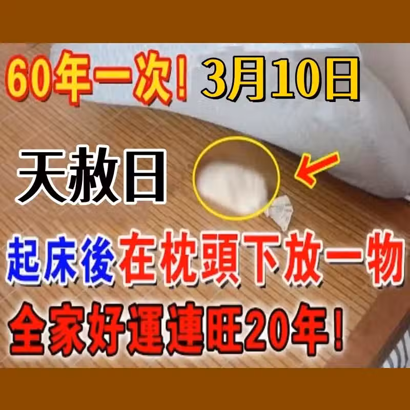 不是迷信! 就在3月10號「天赦日」,起床牢記在枕頭下放一物,隔天就有橫財降臨!全家好運連旺20年!