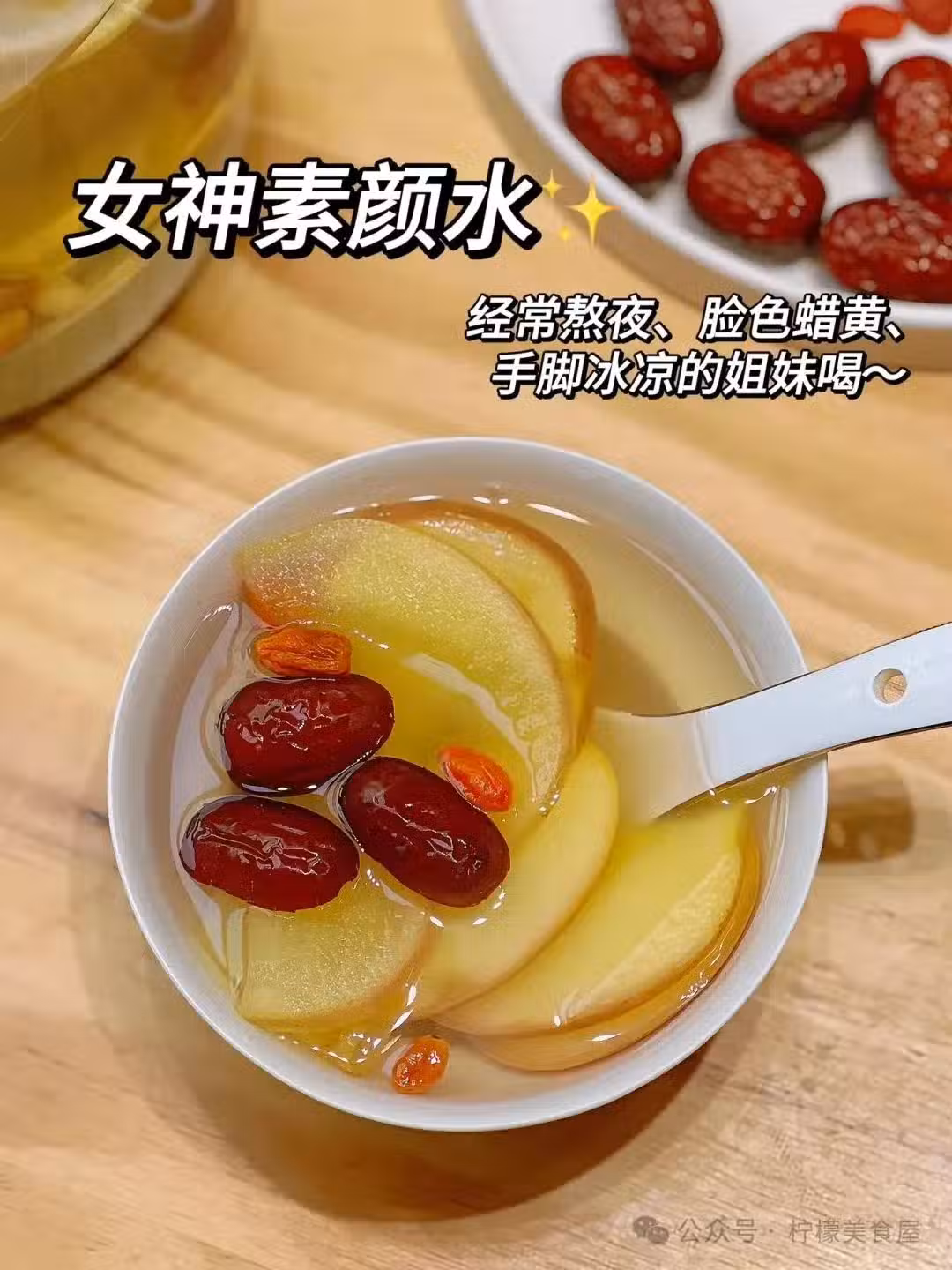 在一個家庭中,最辛苦的就是咱們女人了,每天不僅要賺錢養家,還要操心孩子的健康、學習。 一整天下來,疲憊不堪。長此以往,臉色臘黃臘黃的,跟個黃臉婆似的。 咱們女人啊,真要對自己好點,每天喝點健康的養生水,滋養滋養氣色。 蘋果水,就特別好。神奇的魔法水。補氣血、健脾胃、美容養顏。 一、蘋果黃芪麥冬水 女神素顏水,蘋果黃芪麥冬水,分享過幾次了,還有不知道的姐妹嗎?一款經典蘋果水,補氣血、健脾胃。 做法也特別簡單,每天工作的時候,煮上一壺,喝上一碗,脾胃舒服了,氣色也好了。 偷偷告訴大家,我們辦公室的小夥伴就特別愛喝蘋果水,總是隔三差五煮著喝,怪不得個個那麼精神,氣色那麼好。 經常熬夜、臉色臘黃、手腳冰涼的姐妹,都給我喝起來。一周喝2次,堅持1個月,氣色紅潤。 食材: 麥冬10克、蘋果一顆、枸杞5克、紅棗5顆、黃芪5克