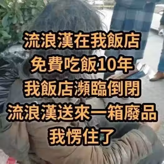 流浪漢在我飯店免費吃飯 10 年,當店面瀕臨倒閉時,他卻送來一箱「廢品」……我打開後瞬間愣住,眼眶也濕了