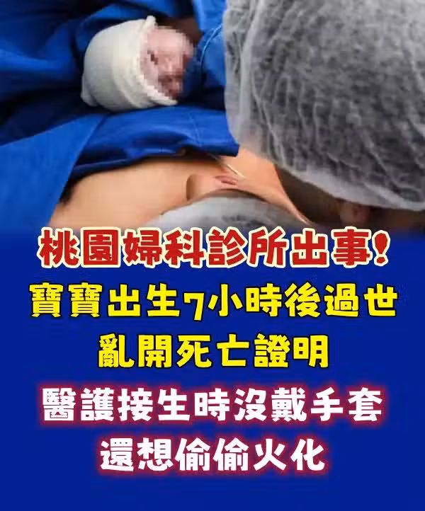 桃園婦科診所出事!寶寶出生「7小時後過世」亂開死亡證明 醫護「接生時沒戴手套」還想偷偷火化