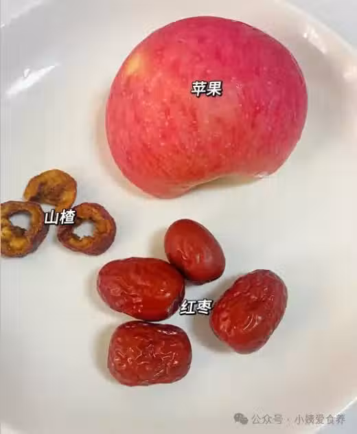 2️⃣加兩塊黃冰糖,放山楂、蘋果,加水