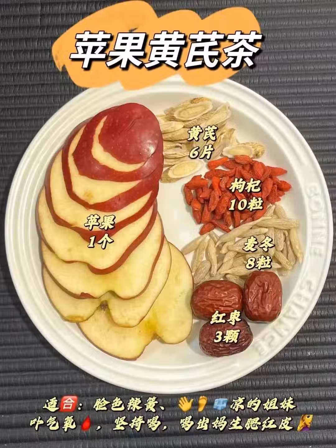 蘋果1個+枸杞10粒+紅棗3顆+薑絲3克+黃芪6片