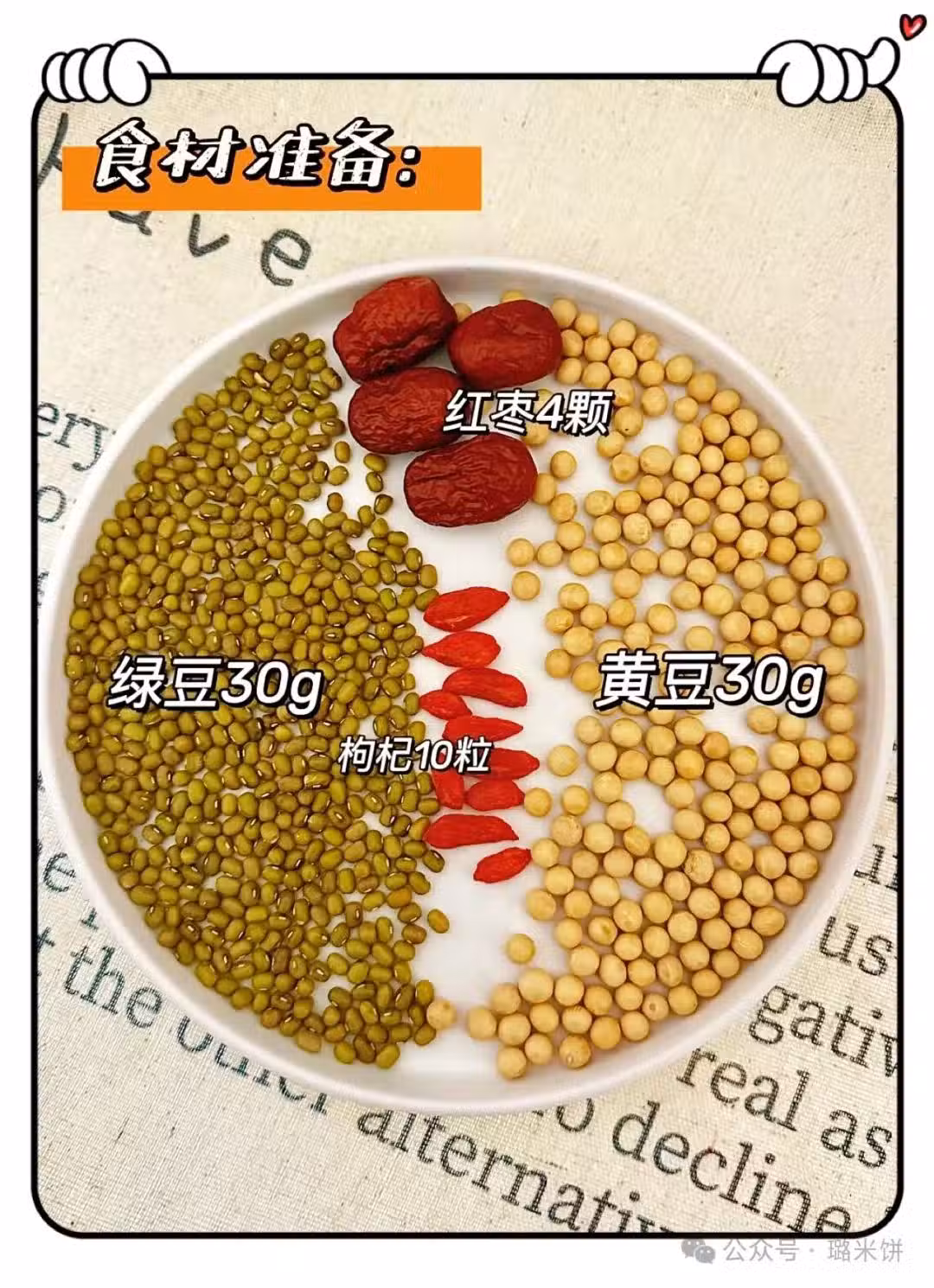 所有食材洗凈一起放進破壁機,加水,按豆漿鍵就可以啦!