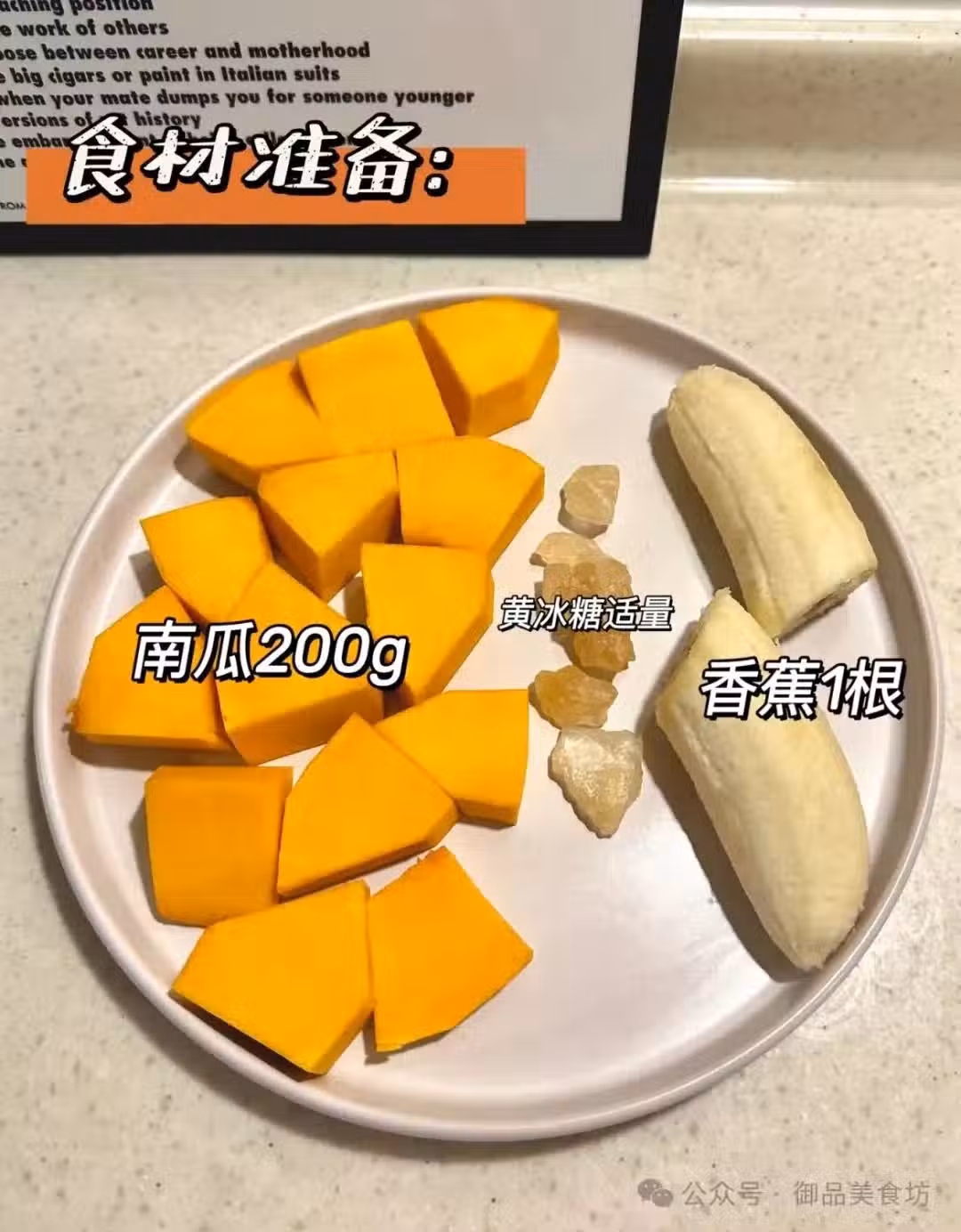 2️⃣:生南瓜和香蕉一同倒入破壁機加入飲用水,米糊模式或豆漿模式攪打成汁,結束後再加入牛奶果汁模式1分鐘攪打均勻即可。