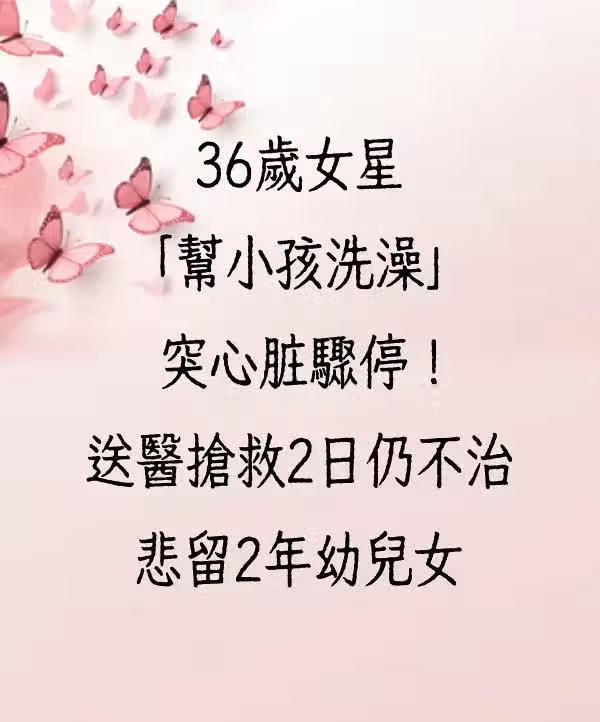36歲女星 「幫小孩洗澡」突心臟驟停!送醫搶救2日仍不治,悲留2年幼兒女