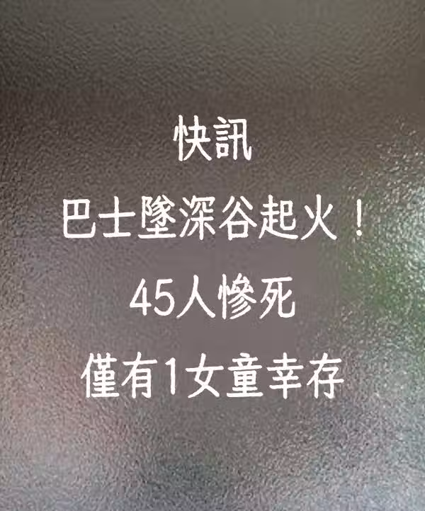 快訊/巴士墜深谷起火!45人慘死 僅有1女童倖存