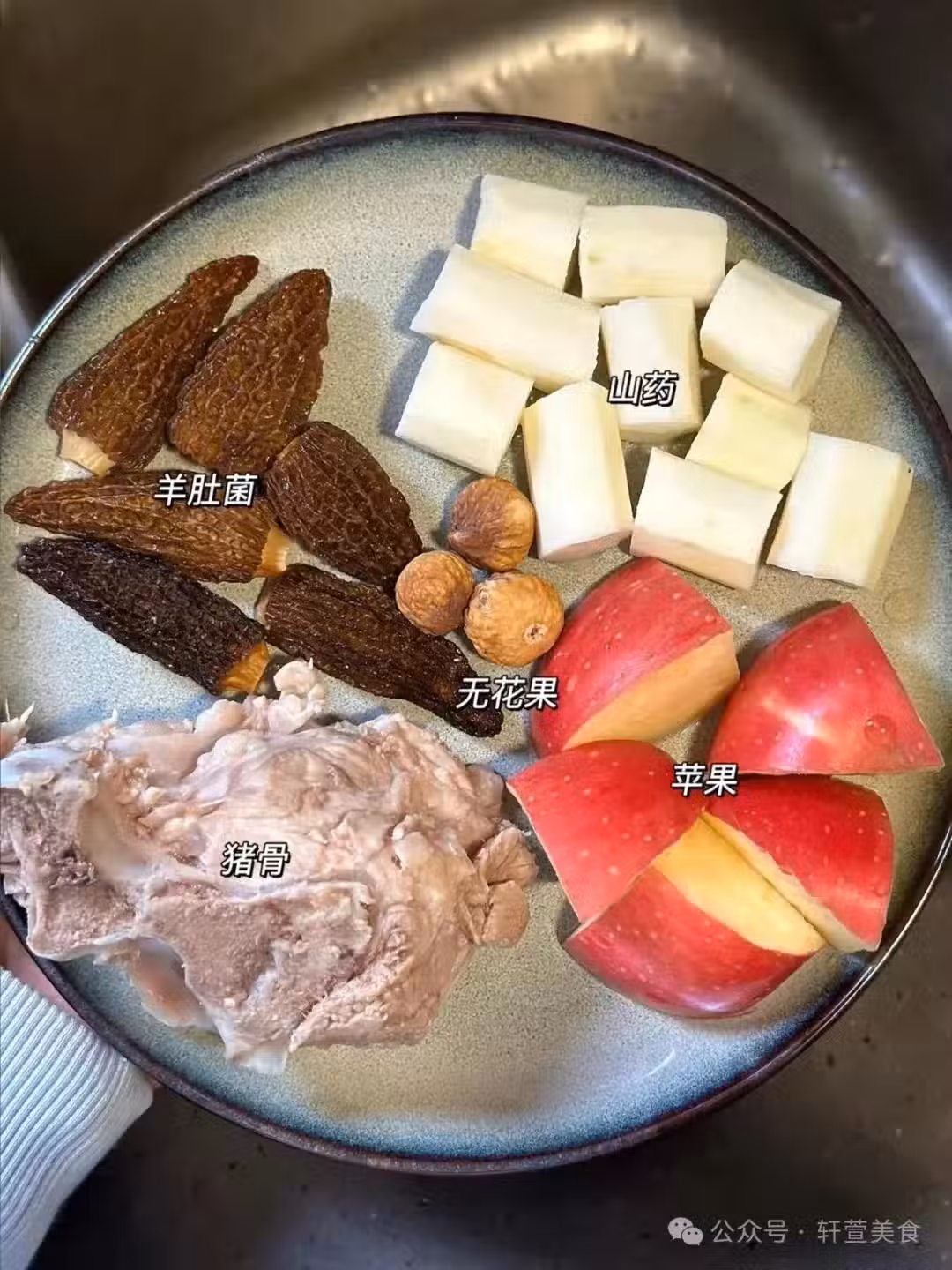 3️⃣羊肚菌清洗乾淨提前浸泡5分鐘,流動水沖洗內里去沙;
