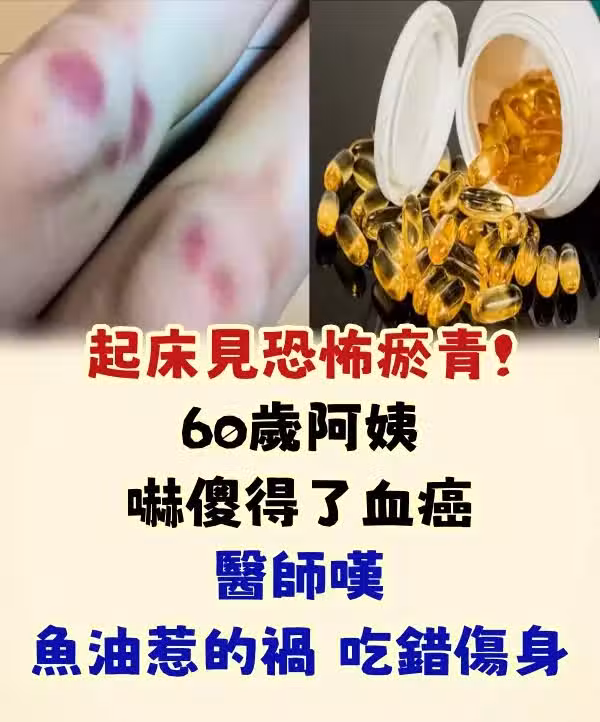 起床見恐怖瘀青 60歲阿姨嚇傻「我得了血癌」衝去掛急診 醫師嘆「魚油惹的禍」吃錯傷身