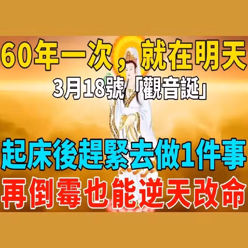 🌟 60 年一次!就在明天 3 月 18 日(農曆二月十九)「觀音誕」,起床後趕緊做這 1 件事,再倒霉也能逆天改命,財運大爆發!🔥