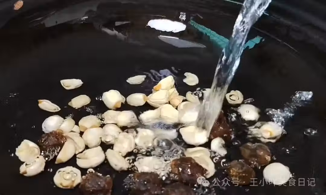 4、開始烹飪:準備一個小砂鍋,將處理好的桂圓肉和蓮子肉放入砂鍋中。加入約三碗清水,水量可根據個人喜好和砂鍋容量適當調整。蓋上鍋蓋,大火煮沸後轉小火慢慢燉煮。