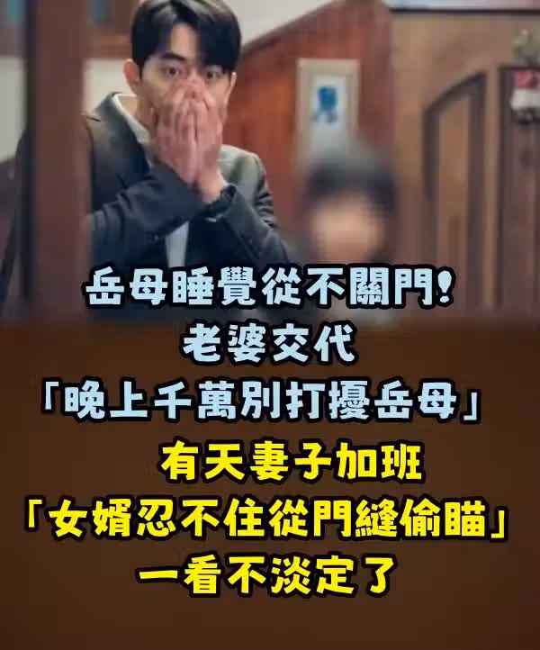 岳母睡覺上廁所從不關門!老婆交代「晚上千萬別打擾岳母」 有天妻子加班「女婿忍不住從門縫偷瞄」一看不淡定了