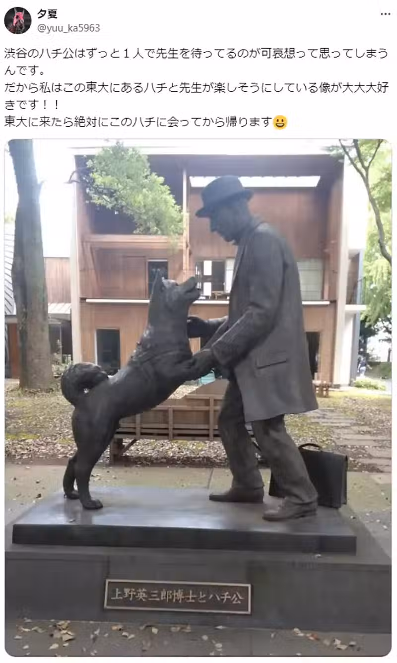 這位暱稱「夕夏」的日本X網友,最近分響了他在日本最高學府東京大學看到的一座銅像,隨即引爆上萬人按贊、轉發的熱烈反響!