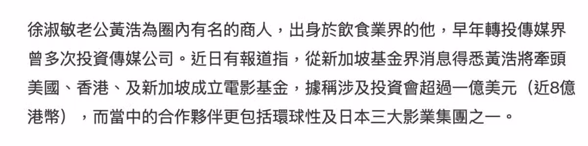 港姐徐淑敏全家移民失敗回香港,丈夫轉戰電影業,聲稱要投資8億