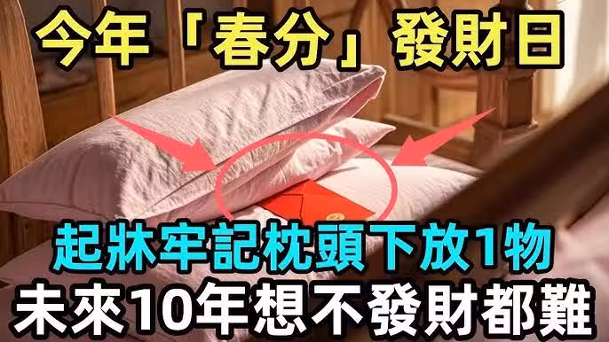 1️⃣ 早晨9:00前,雙手搓熱「摸枕頭」,強化財氣! 起床後,先用雙手搓熱,然後輕輕摸枕頭 3 次,心中默念:「春分轉運,財運來臨!」,這樣可以進一步激活財運!
