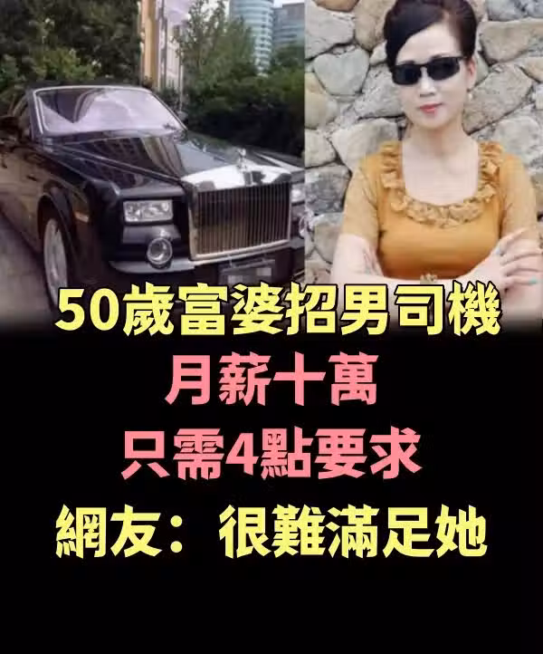 50歲富婆招男司機,月薪十萬隻需4點要求,網友:很難滿足她……