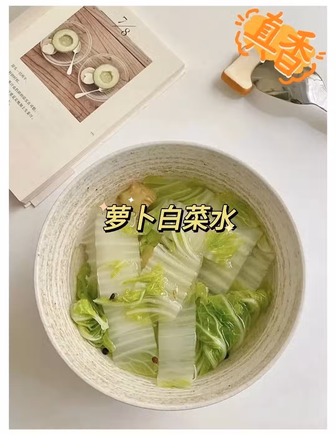 ③放入菜葉煮軟,加一勺鹽,燜煮1分鐘,盛出即可。