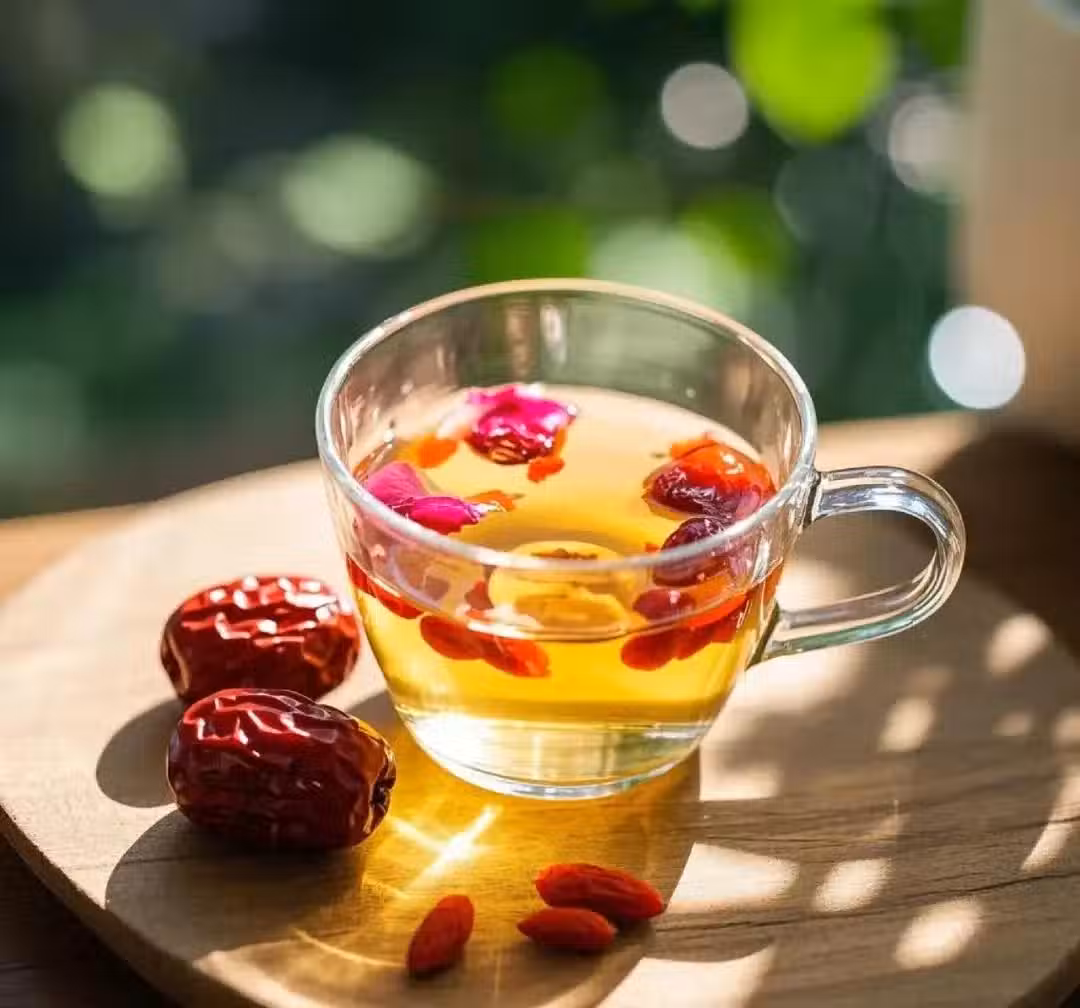 1️⃣把適量的玫瑰、紅棗(去核哦)、枸杞丟進養生壺或者保溫杯里,加入熱水燜泡 10 - 15 分鐘,養生壺煮一煮味道更濃郁哦